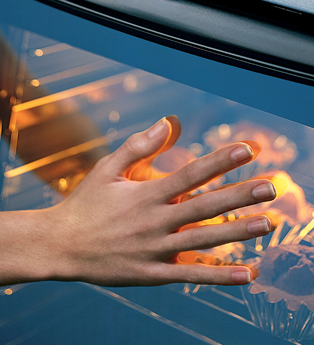 Použití třech skel ve dveřích trouby umožňuje výrazné snížení teploty čela trouby.
