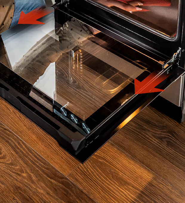 Díky nové konstrukci dvířek je možné bezpečně a snadno odmontovat sklo trouby bez nutnosti vyjmutí celých dvířek. Řešení pomocí klipsu nevyžaduje použití žádného nářadí a sklo je možné snadno vyjmout. Nyní je velmi snadné udržet troubu v čistotě.