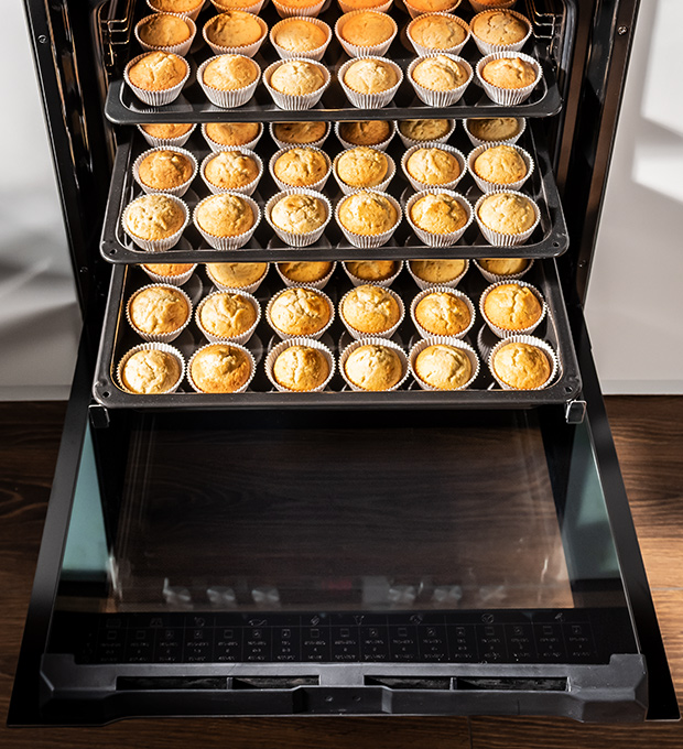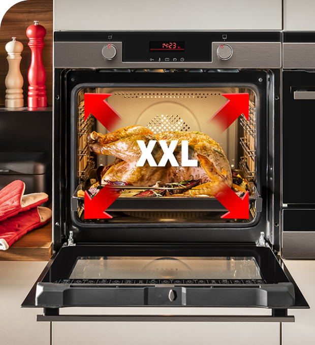 Objem trouby zvětšený až na 66 l umožňuje maximální využití prostoru a možnost péct více jídel zároveň.