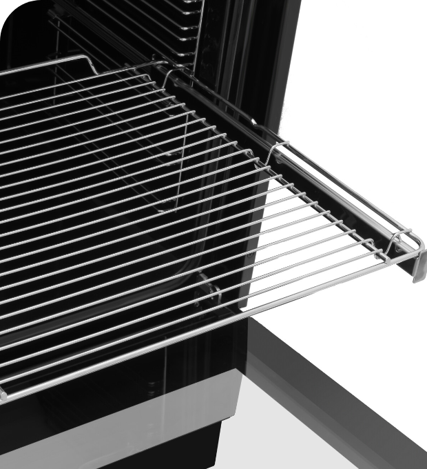 Rošt do trouby je vybaven pojistkou, díky níž je stabilní a umožňuje volné vysouvání bez obav, že jídlo vypadne nebo se nechtěně vysune.