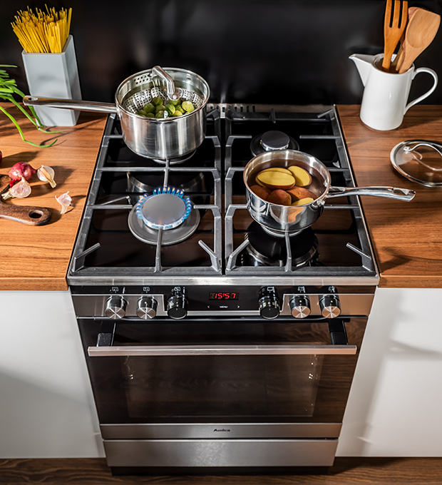 Nové sporáky Amica jsou vybaveny šikovnými funkcemi na dosah ruky, např. rychlým ohřevem a rozmrazováním. Předehřátí trouby ve zrychleném tempu nebo rozmrazování porce masa už nebude představovat žádný problém.