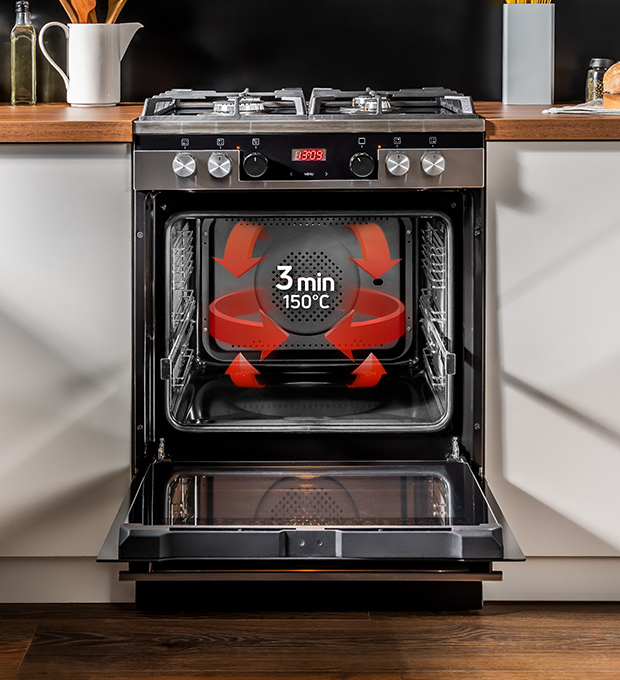 Trouba dosáhne teploty 150°C za čtyři minuty - tedy o 20 % rychleji ve srovnání se obvyklým stavem.